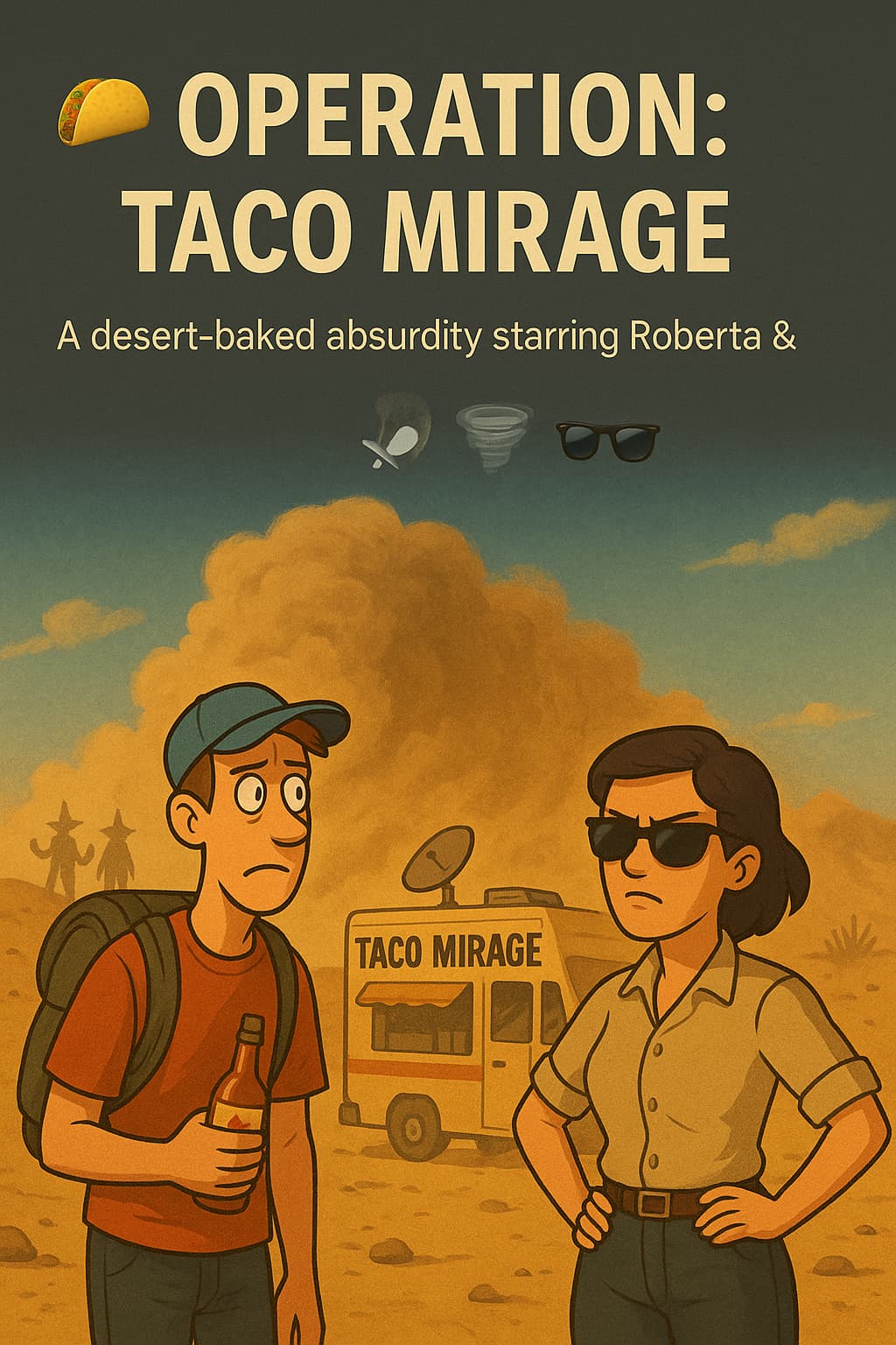 “■■■■,” he said, nudging Roberta’s shoulder like a caffeinated meerkat. “You ever hear of Taco Mirage?”